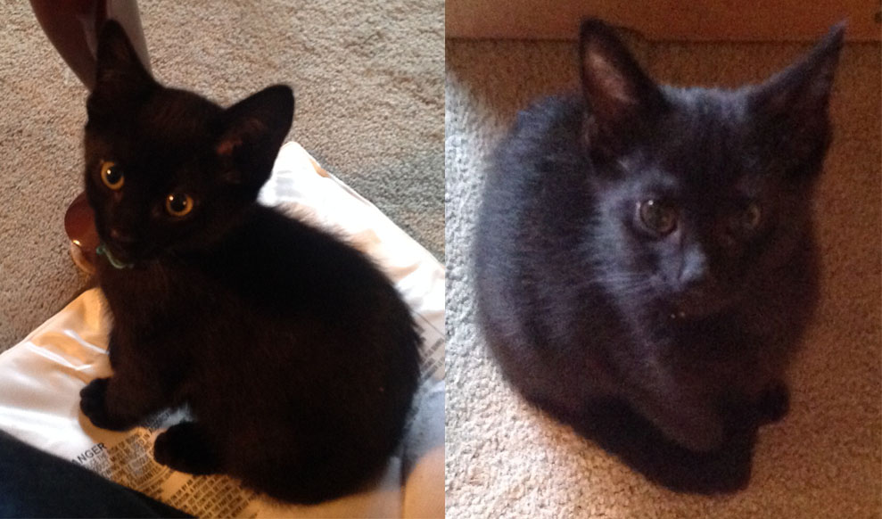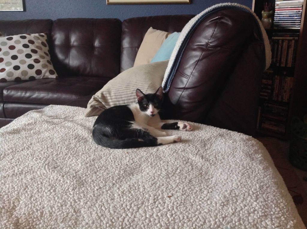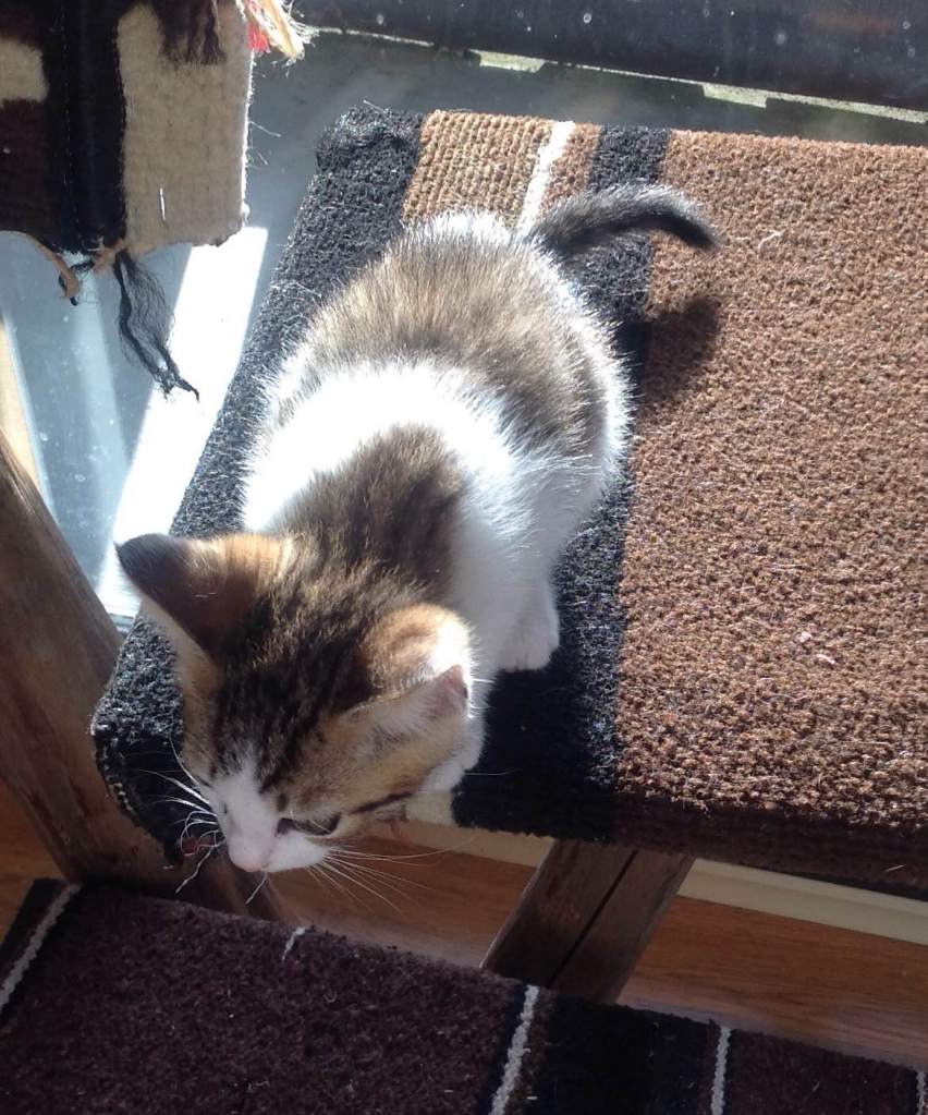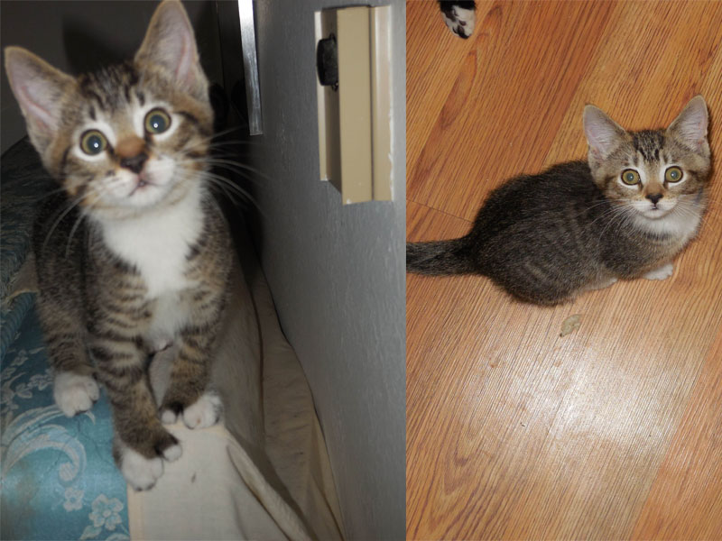 These two girls, known as the Swimmer Kittens, were born in June with a muscle condition known as Swimmers Syndrome where the hip and thigh muscles were not strong enough to allow them to get their feet under them to raise them up. Give them runner carpets in their room and -Voilá- they were up, walking, and climbing within a week. Even so, we gave them more time to fully develop their muscles to normal. Now they are ready for adoption. Both are cuddlers and love all cats, dogs, and people. They may be shy at first but will warm up. Gabriella is even boding to be a “undercover agent,” wanting to cuddle under the blankets.