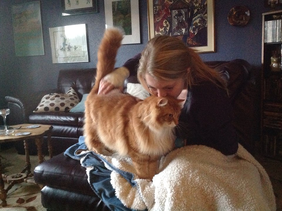 In one stunning case she was able to earn the trust of a young adult male orange tabby. He became so comfortable with Zoe and her family, they had no choice but to adopt him or one could look at it as he adopted them. Zoe named him Tommi and this abandoned little boy made the Alstrup’s couch his new home. Besides Tommi, Zoe was also responsible to trapping adult feral cats and kittens so they could be fixed and/or adopted, as well as housing them for short periods of time till they could be picked up.